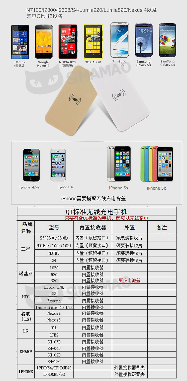 QI標準無線充電手機 只要符合QI標準的手機,都可以無線充電