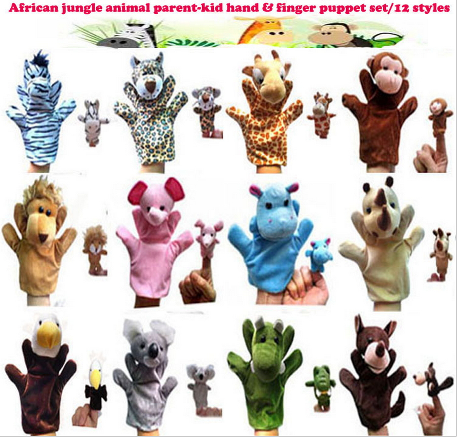 12款叢林動物親子毛絨大手偶套組 + 小指偶親子玩具