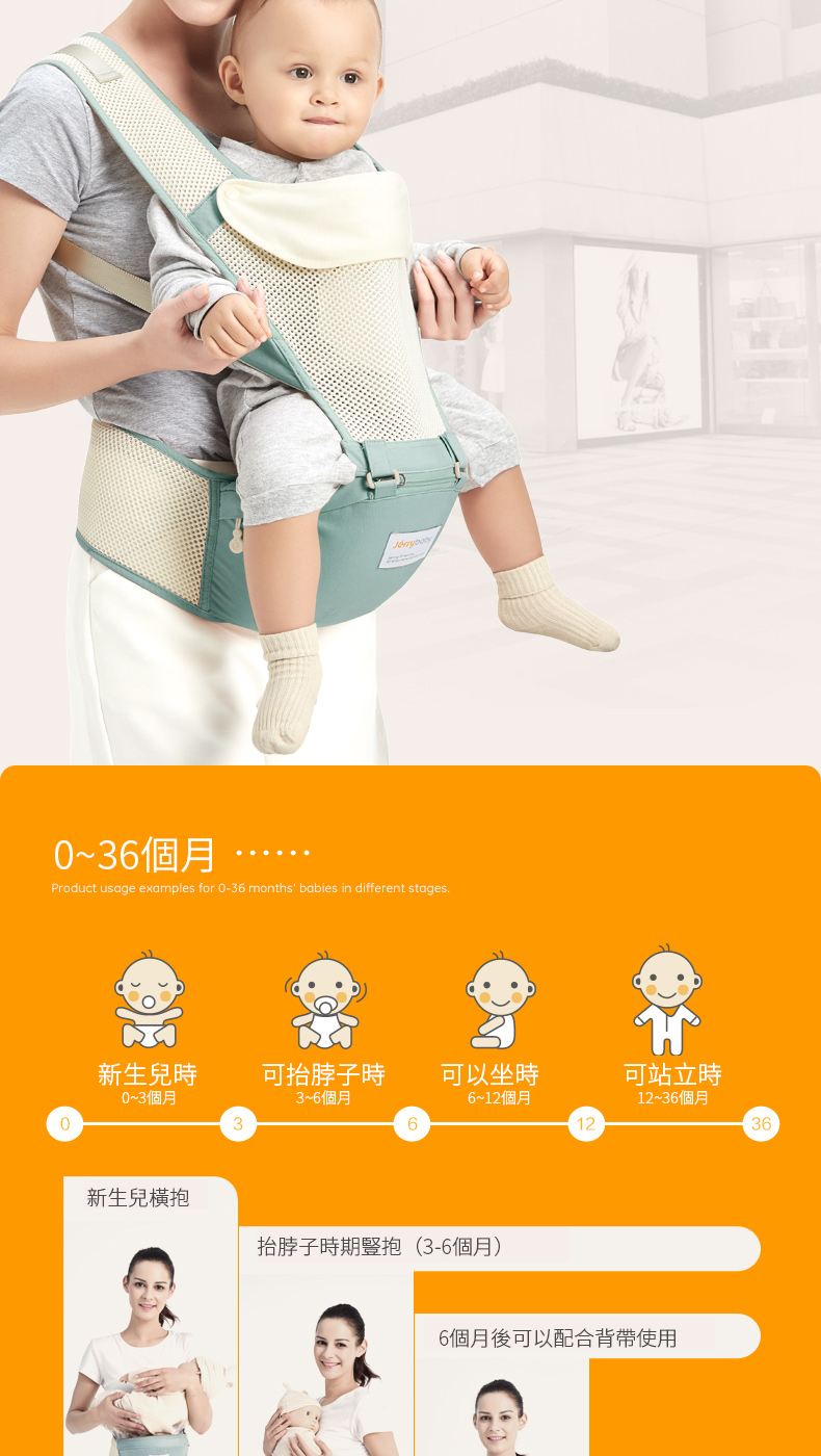 Jerrybaby Four Seasons hipseat 寶寶坐凳腰凳嬰兒背帶四季多功能透氣抱娃神器前抱式