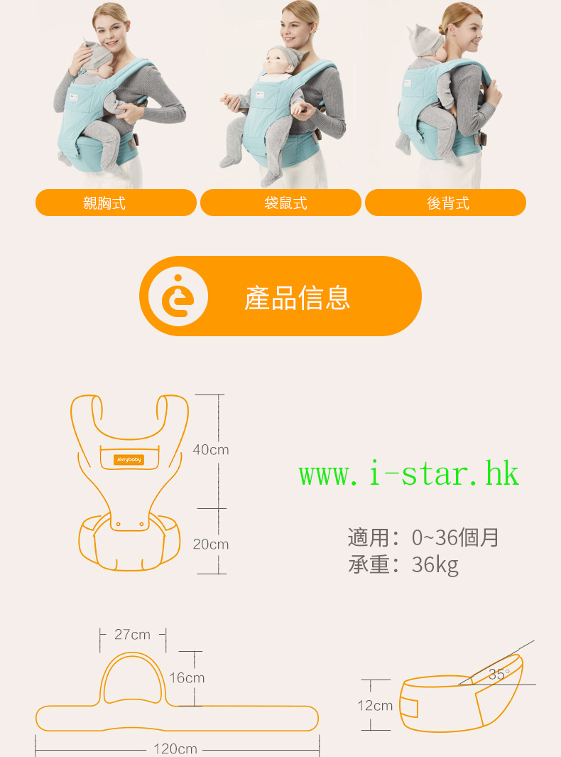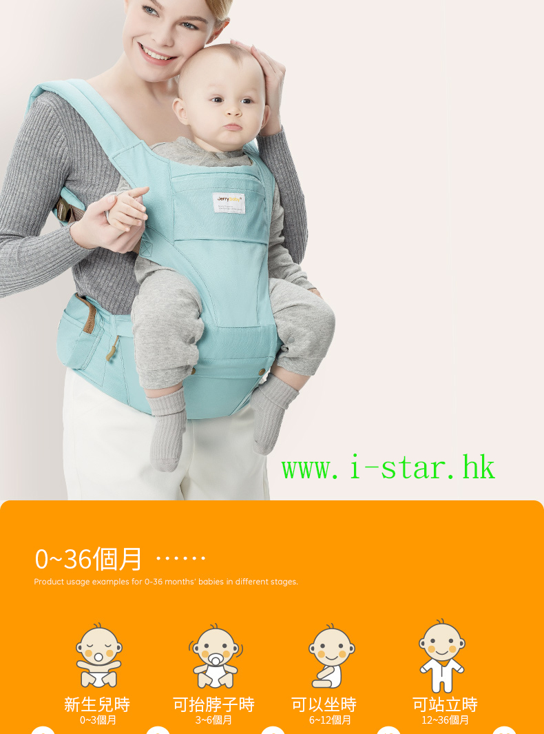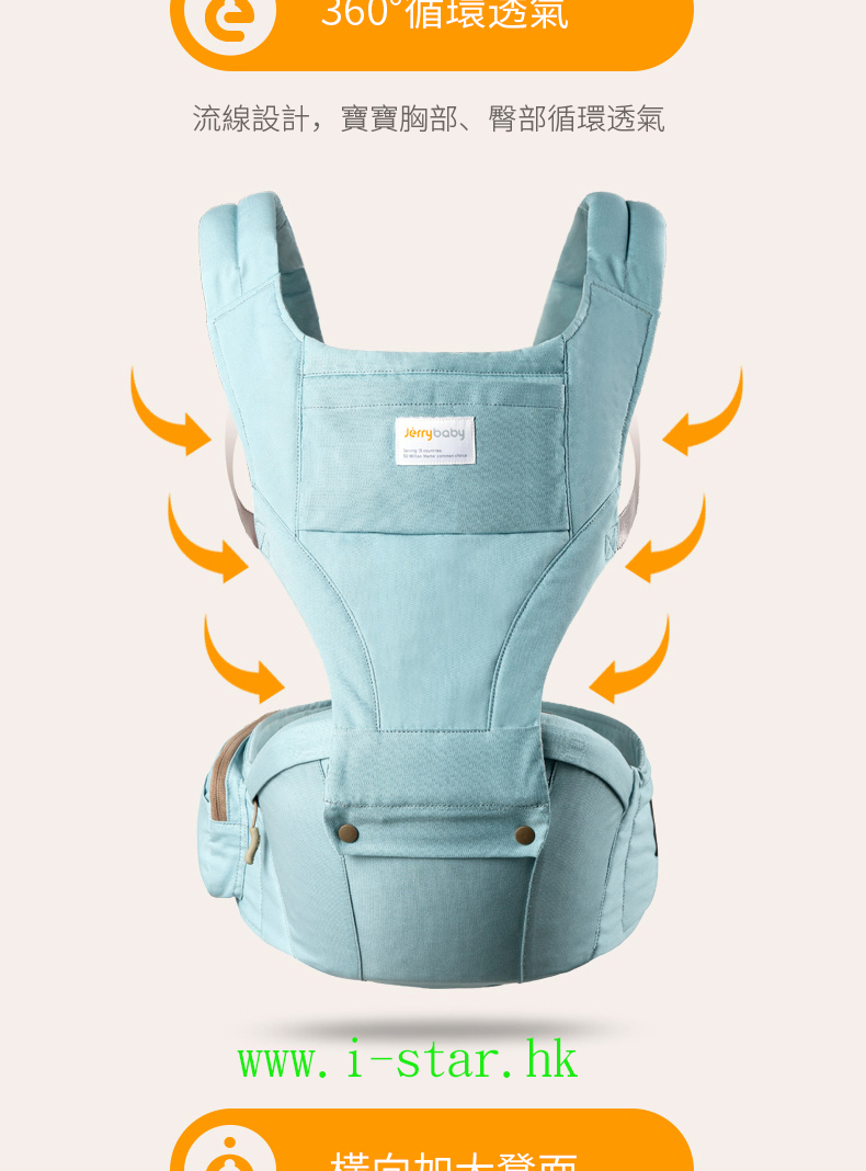 Jerrybaby Four Seasons hipseat 四季多功能腰凳背帶小孩抱帶坐凳寶寶嬰兒前抱式(供歐版)