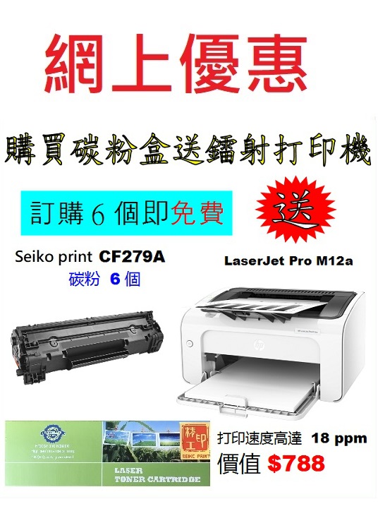 > 電腦週邊產品 > 送打印機優惠 > 買seiko print 碳粉送打印機 > 送HP打印機 > 特價-買碳粉送 HP M12a 打印機優惠 - seiko print CF279A 碳粉 6個特價-買碳粉送 HP M12a 打印機優惠 - seiko print CF279A 碳粉 6個