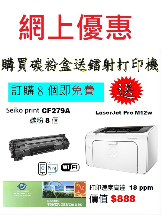 > 電腦週邊產品 > 送打印機優惠 > 買seiko print 碳粉送打印機 > 送HP打印機 > 特價-買碳粉送 HP M12w 打印機優惠 - seiko print CF279A 碳粉 8個特價-買碳粉送 HP M12w 打印機優惠 - seiko print CF279A 碳粉 8個