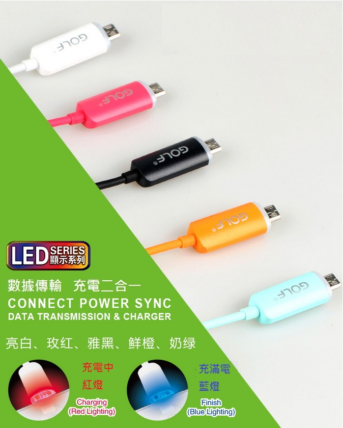 LED發光MICRO數據線/充電線 (黑暗中也不會插錯,是否已充好電一看便知,無需打開手機或IPAD檢查)