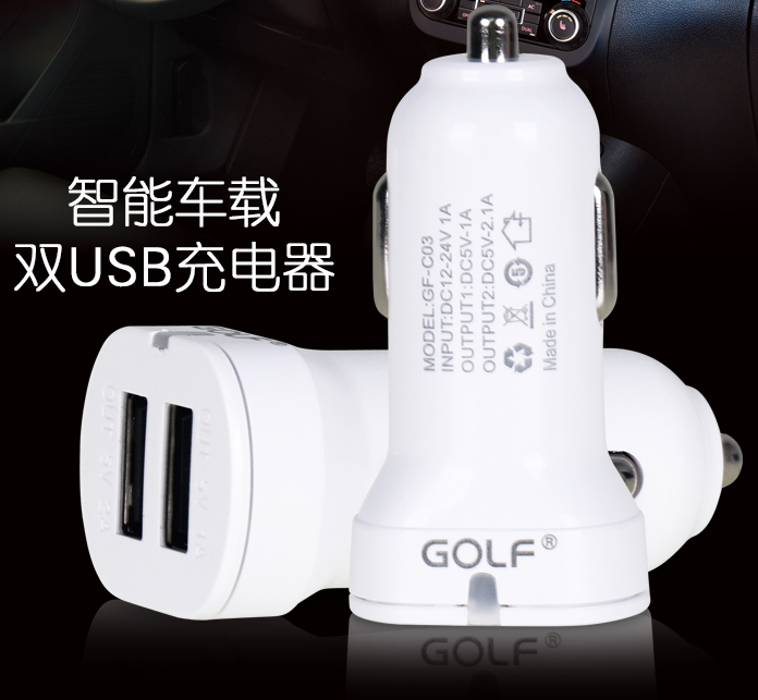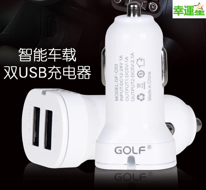 商品簡述:GF-C03 2.1A/1A雙USB接口蘋果4/5手機通用,IPAD車載充電器車充適配器