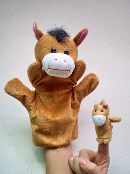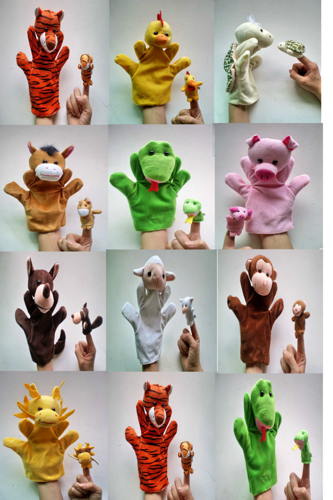12 款動物手偶, 不同一般的手偶只能動手, 最大的特點就是五個手指可以分別控制頭和四肢,可以做很多可愛的動作, 表現出動物的頭, 手和腳都可以移動,