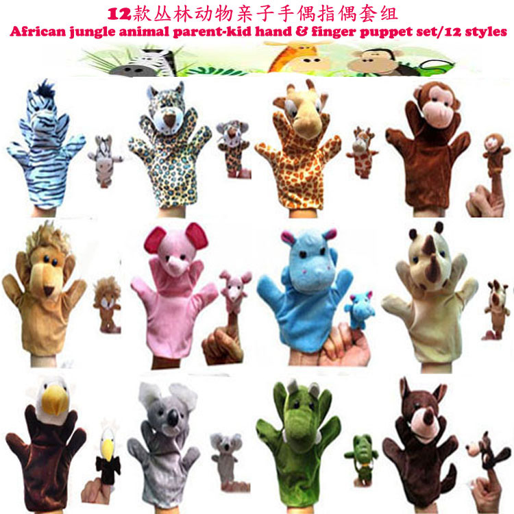 12款叢林動物親子毛絨大手偶套組 + 小指偶親子玩具