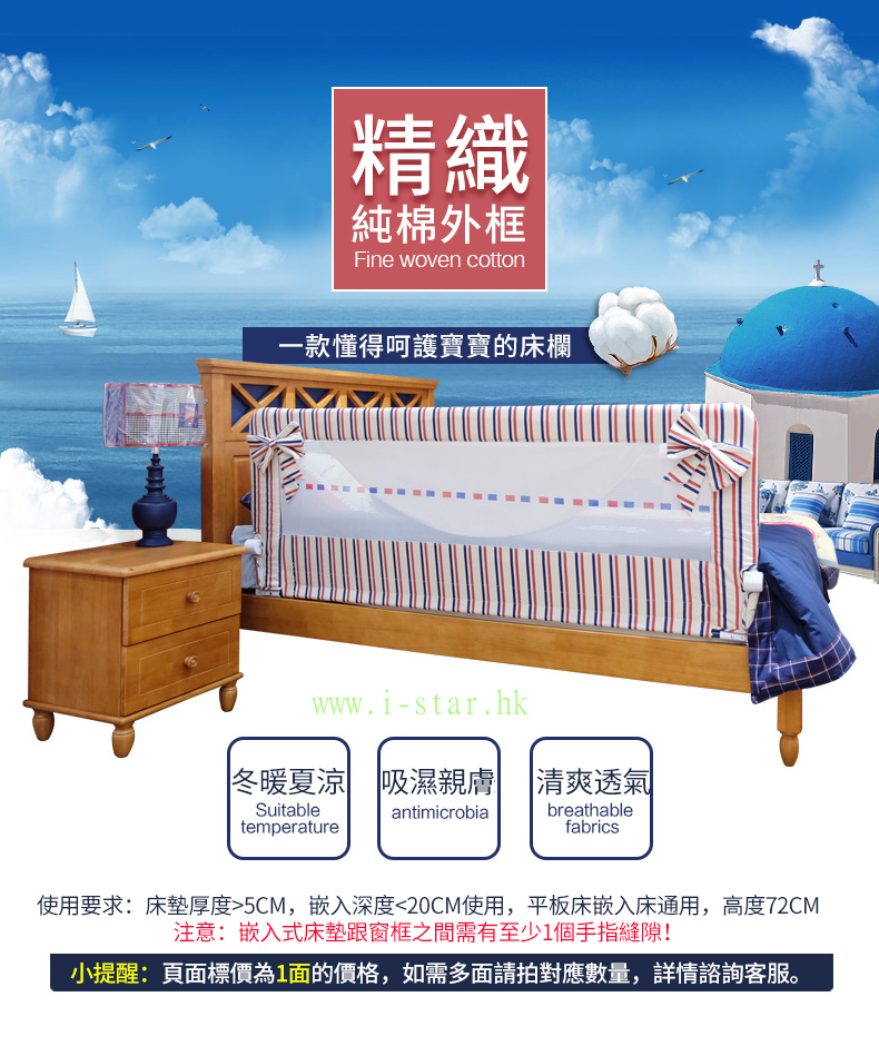 kooldoo 兒童安全床圍欄 大床1.8-2米純棉外框